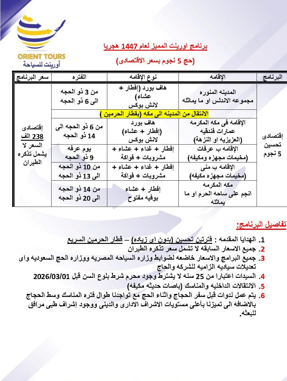 ✈️ برنامج اورينت المميز لعام 1447 هـ (حج 5 نجوم بسعر اقتصادي) 🌟🌟🌟🌟🌟